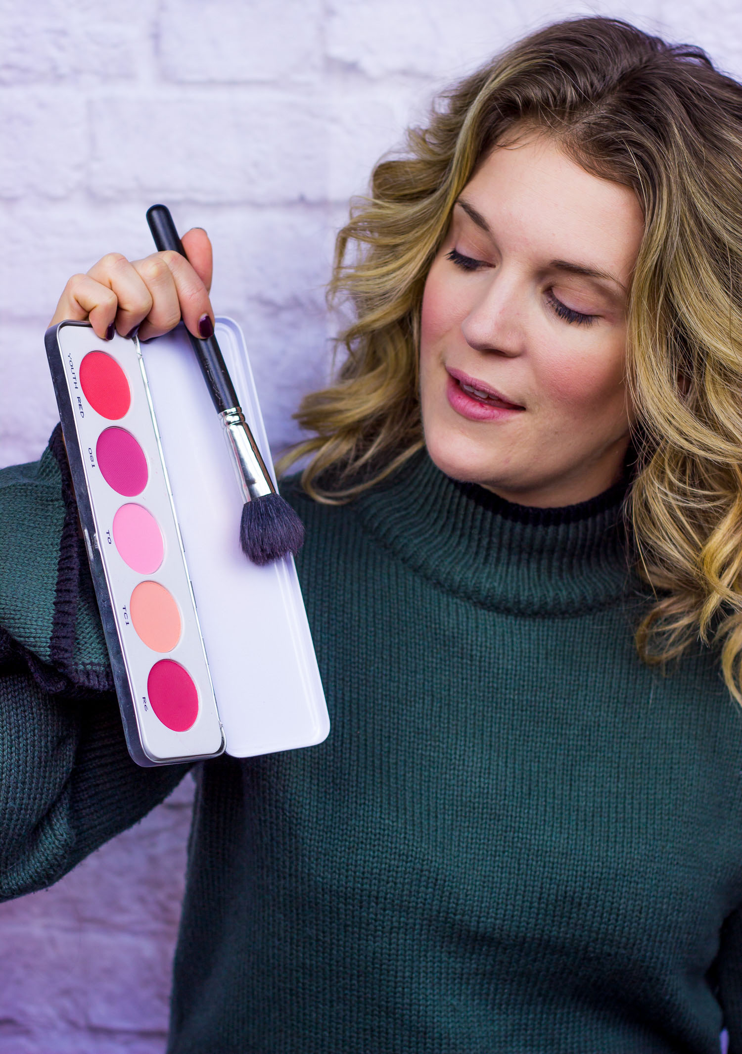 - Blush (I prefer Tarte Amazonian clay 12-hour blush but am using a Kryolan palette in this post because I literally ran out of Tarte the day I wrote this!).