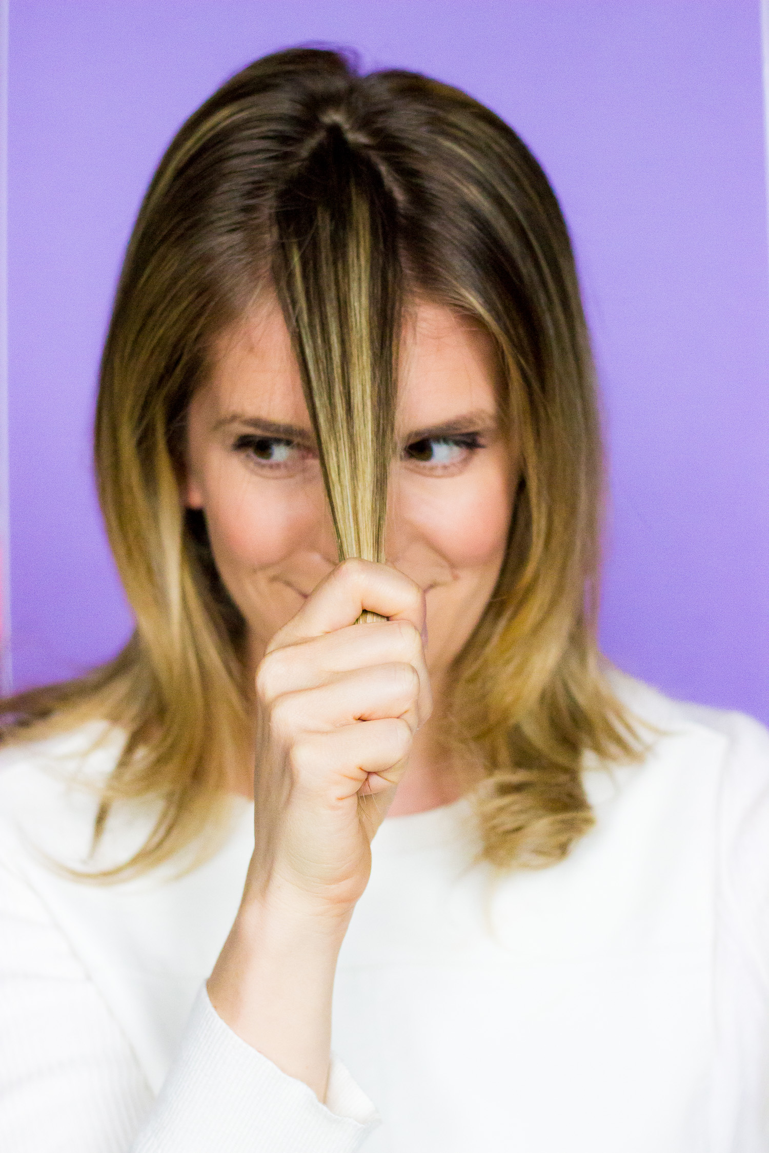 - SOFTEN THE PART – I learned this one working in salons. Take a section of hair from each side of the part (after it’s dry) and brush/blow them together. Don’t worry, you won’t mess up the part. You’ll make it less stark!